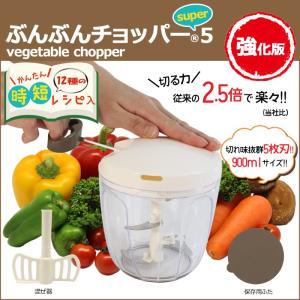 【便利グッズ】ハンドルを引っ張るだけで、簡単みじん切り! “ぶんぶんチョッパー スーパー5” 食器・キッチン用品【AD】 今回は話題の便利グッズをご紹介!めんどくさい野菜のみじん切りがハンドルを引っ張るだけでできちゃう、電池いらずの簡単調理用カッター “ぶんぶんチョッパー スーパー5”旧作の“ぶんぶんチョッパー5”よりも切る力が2.5倍になってパワーアップ!話題の注目商品ということで、テレビ朝日系番組“家事ヤロウ!!!”などでも取り上げられました。.手動で簡単みじん切り! “ぶんぶんチョッパー スーパー5”ぶんぶんチョッパー スーパー5ハンドルを引っ張るだけで、簡単&安全にみじん切りができちゃう調理器具です。使い方は簡単!容器に刃をセットして、食材を入れ、フタをします。あとは容器をしっかり押さえて、ハンドルを数回引っ張るだけ!ハンドルを引っ張るごとに中の刃が回転します。引っ張る回数を調整することで、みじん切りの細かさを微調整できます。旧作の“ぶんぶんチョッパー5”よりも、切る力が2.5倍になってパワーアップ!刃に食材が引っかかることが少なくなりました。野菜を刻みながら、調味料を一緒に混ぜることもできます!前作が3枚刃だったのに対し、こちらは5枚刃になって切れ味もアップ!お手入れも簡単に!引っ張るだけなので、小さなお子さんも安心して使用できます。まな板まわりを汚すこともありません。刃を混ぜ器に付け替えれば、ドレッシングやソース作りもできます!また、保存用フタも付属しているので、作りすぎてもそのまま冷蔵庫に保存できます!時短レシピが付いてるのも何気に嬉しいです。ハンドルを引っ張るだけで、簡単にみじん切りができる “ぶんぶんチョッパー スーパー5” 。これさえあれば、硬い野菜を刻んで疲れることも、玉ねぎで涙することもありません!気になる方は是非チェックしてみて下さい!.AD Rakuten & Amazon(photo) & Yahoo(photo)ぶんぶんチョッパースーパー5 強化版 大容量900mlposted with カエレバYahooショッピングAmazon楽天市場.気になる商品は買い物カゴの中でキープしておこう気になる商品はその都度、買い物カゴにキープしておくことをオススメします。買い物カゴの中で商品をキープしておけば、楽天の “スーパーセール” やYahoo!ショッピングの “5のつく日キャンペーン” などの開催時に、スピーディーかつお得に購入することができます。「お気に入りから探してる間に売り切れ」「セール終了時間に間に合わず」「慌てて注文して色やサイズを間違えてしまった」そんなミスをしないために、気になる商品はその都度、買い物カゴの中でキープしておきましょう。